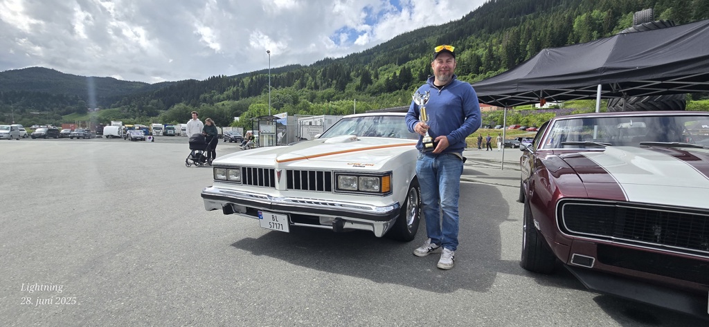 Mens vi venter på sommeren og klargjøring av entusiastbilen vår. Legger jeg med et bildet fra en av mange treffene klubben var representer på. Her er Erik med sin sjeldne og strøkne Potntiac Can Am 1977 model.
